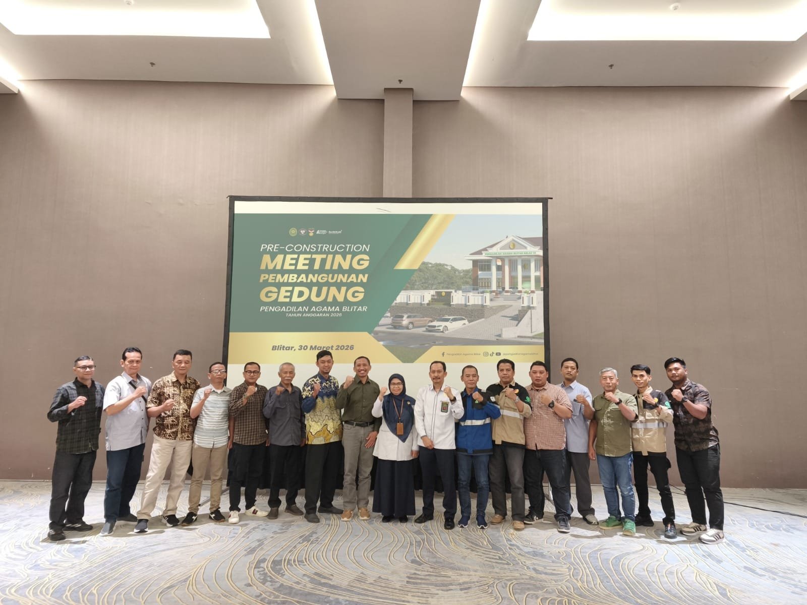 Pengadilan Agama Blitar menggelar Pre-Construction Meeting (PCM) pembangunan gedung tahun anggaran 2026 pada Senin (30/3) di Ballroom Hotel Santika Blitar. Kegiatan ini diikuti oleh Ketua, Sekretaris, Pejabat Pembuat Komitmen (PPK), serta pihak terkait sebagai langkah awal memastikan kesiapan teknis sebelum pelaksanaan pembangunan dimulai.