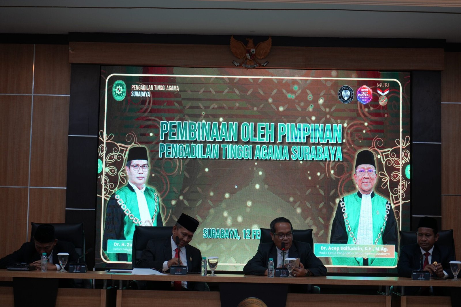 Kegiatan yang dimulai pukul 09.30 WIB tersebut merupakan agenda resmi yang diselenggarakan oleh PTA Surabaya dalam rangka penguatan kelembagaan serta peningkatan kualitas kepemimpinan di lingkungan peradilan agama wilayah Jawa Timur.