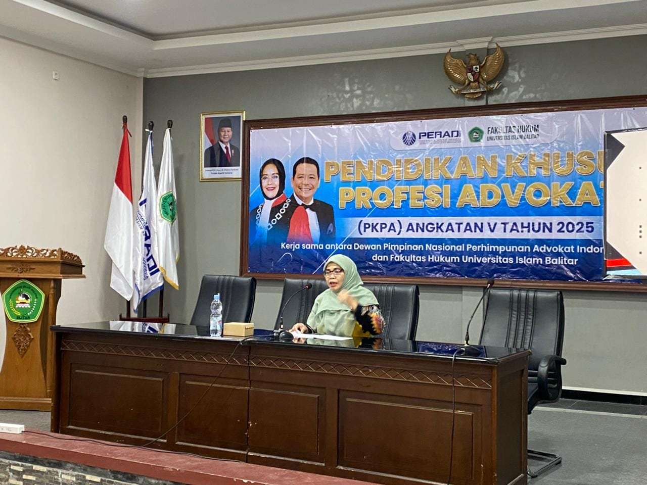 Ketua Pengadilan Agama Blitar, Farida Hanim, menjadi narasumber dalam Pendidikan Khusus Profesi Advokat (PKPA) Angkatan V Tahun 2025 yang diselenggarakan Dewan Pimpinan Nasional Perhimpunan Advokat Indonesia bekerja sama dengan Fakultas Hukum Universitas Islam Balitar (UNISBA). Kegiatan berlangsung pada Sabtu, 29 November 2025, bertempat di Kampus UNISBA Blitar.