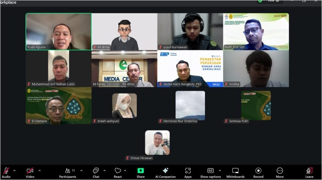 Sekretaris Pengadilan Agama (PA) Blitar bersama Tim Pembangunan Gedung PA Blitar melakukan koordinasi secara daring dengan Kelompok Kerja (Pokja) Pembangunan Gedung pada Selasa (13/1/2026). Koordinasi tersebut dilakukan dalam rangka mematangkan perencanaan dan pelaksanaan pembangunan gedung Pengadilan Agama Blitar.