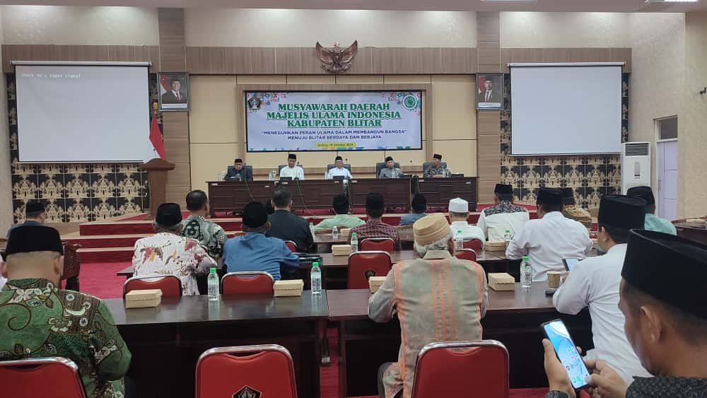 Blitar – Majelis Ulama Indonesia (MUI) Kabupaten Blitar telah sukses menggelar Musyawarah Daerah (Musda) dengan penuh khidmat, meneguhkan kembali komitmen para ulama untuk berperan aktif dalam pembangunan bangsa. Acara penting ini diselenggarakan pada hari Selasa, 14 Oktober 2025, bertempat di Ruang Rapat Candi Penataran, Lantai 3, Kantor Pemerintah Kabupaten Blitar, dan dihadiri oleh para tokoh agama serta perwakilan instansi pemerintahan daerah.