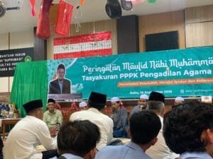 Blitar – Suasana khidmat menyelimuti ruang acara Pengadilan Agama Blitar pada Rabu, 10 September 2025. Dalam rangka memperingati Maulid Nabi Muhammad SAW 1447 H sekaligus menggelar tasyakuran atas pengangkatan Pegawai Pemerintah dengan Perjanjian Kerja (PPPK), keluarga besar Pengadilan Agama Blitar berkumpul dalam satu majelis penuh makna.