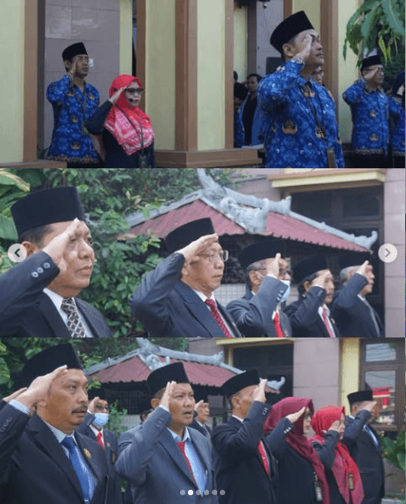 Dalam rangkaian upacara, para aparatur Pengadilan Agama Blitar tampak berdiri tegak dan tertib, mengikuti prosesi dengan penuh penghormatan dan jiwa patriotisme. Kehadiran seluruh aparatur dalam barisan menegaskan komitmen bersama untuk menjaga integritas, loyalitas, dan semangat pengabdian kepada bangsa dan negara.