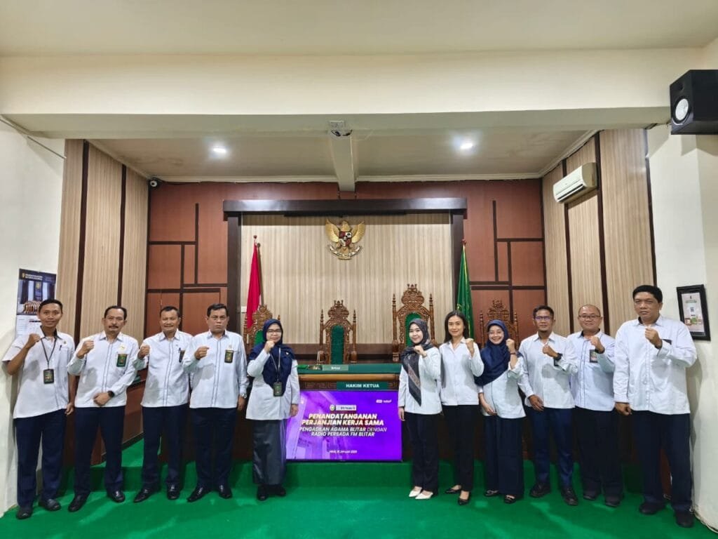 Pengadilan Agama (PA) Blitar menggelar penandatanganan nota kesepahaman (MoU) dengan Fakultas Syariah dan Hukum Universitas Islam Negeri Sunan Ampel (UINSA) Surabaya sekaligus membuka kegiatan Praktik Peradilan Agama pada Senin (12/1/2026). Kegiatan yang berlangsung di Ruang Sidang I PA Blitar tersebut dihadiri oleh pimpinan PA Blitar, perwakilan UINSA Surabaya, serta jajaran pejabat struktural dan fungsional PA Blitar.